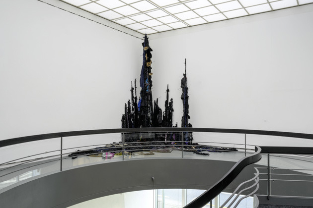 «Overflow» besteht aus einem oder mehreren säulenartigen Gebilden, die als Komposit von einzelnen Kordelsträngen von der Decke hängen und sich in einer Fliessbewegung auf dem Boden ausbreiten. Die hängenden Säulen scheinen im Raum zu stehen.